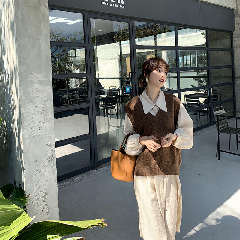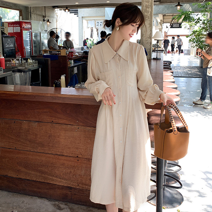 Maternity suit 2022 autumn new large size loose and thin shirt-style dress with vest sweater two-piece set