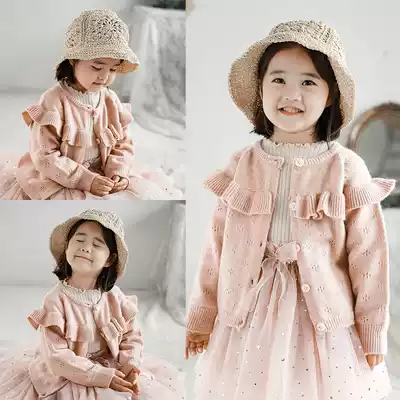 Youyou girls knitted sweater cardigan autumn new sweet wooden ear hollow alpaca baby sweater jacket