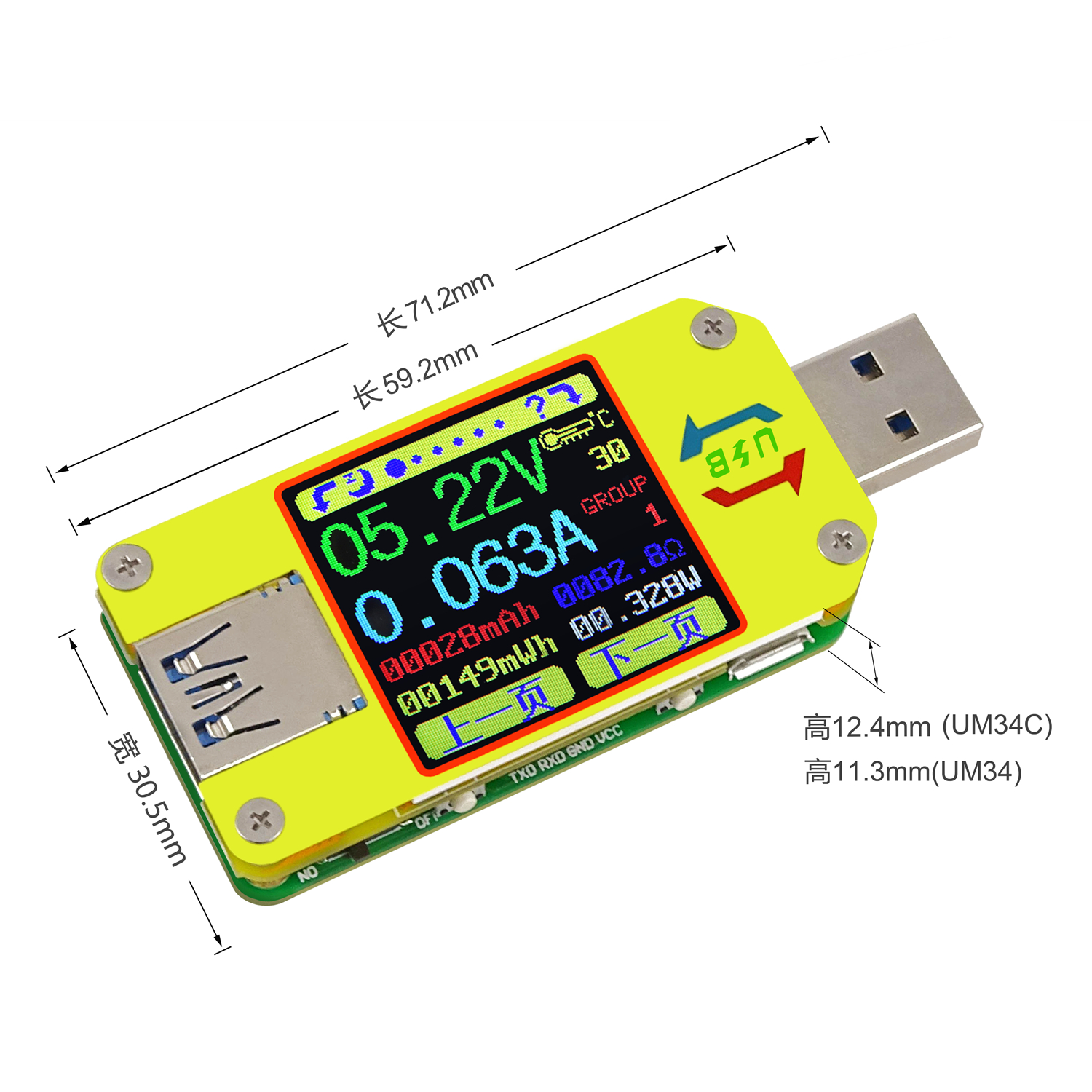 Rueden UM34C with Android APP USB3 0 colour screen tester voltage current to measure Type-C meter