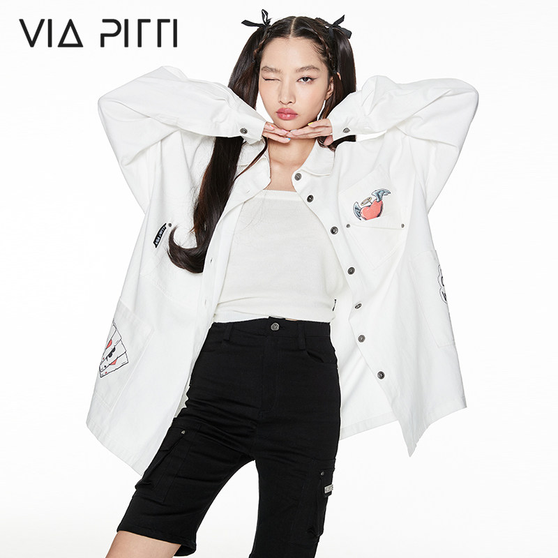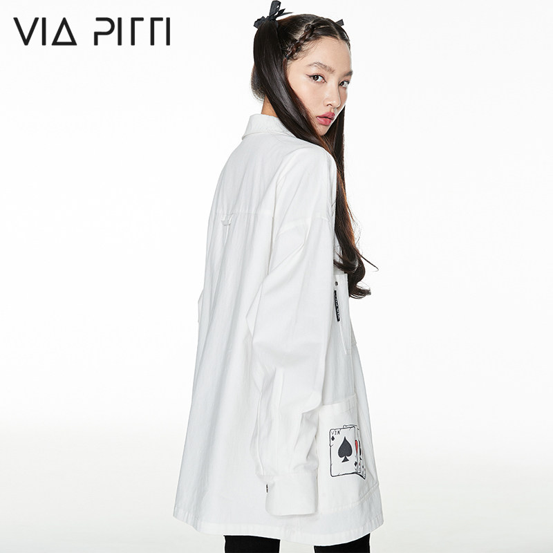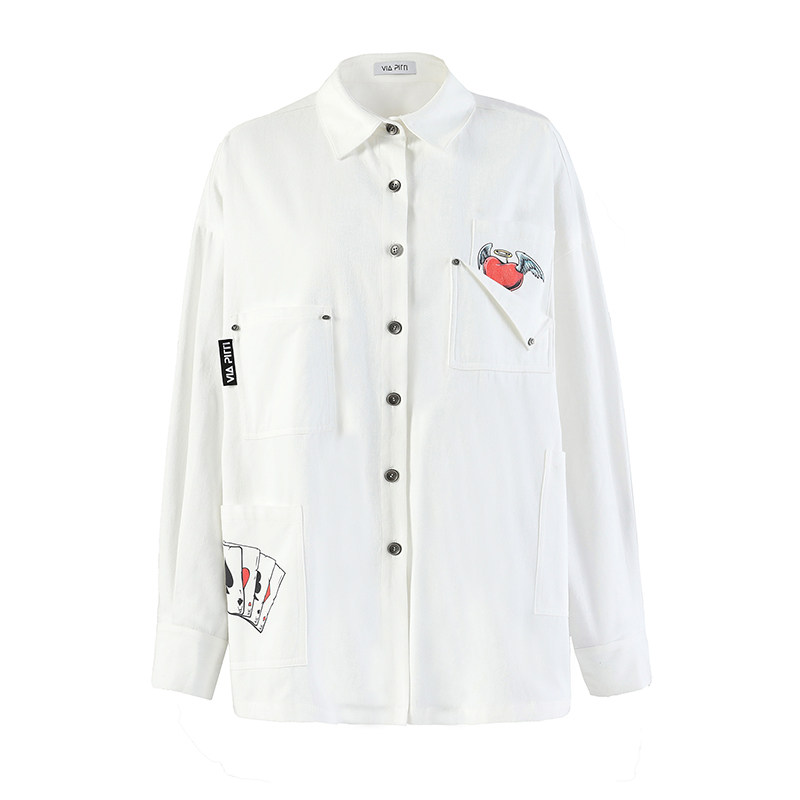 VIAPITTI Poker Love Links Graffiti Letters Big Pocket Shirt Early Autumn New Costume Design