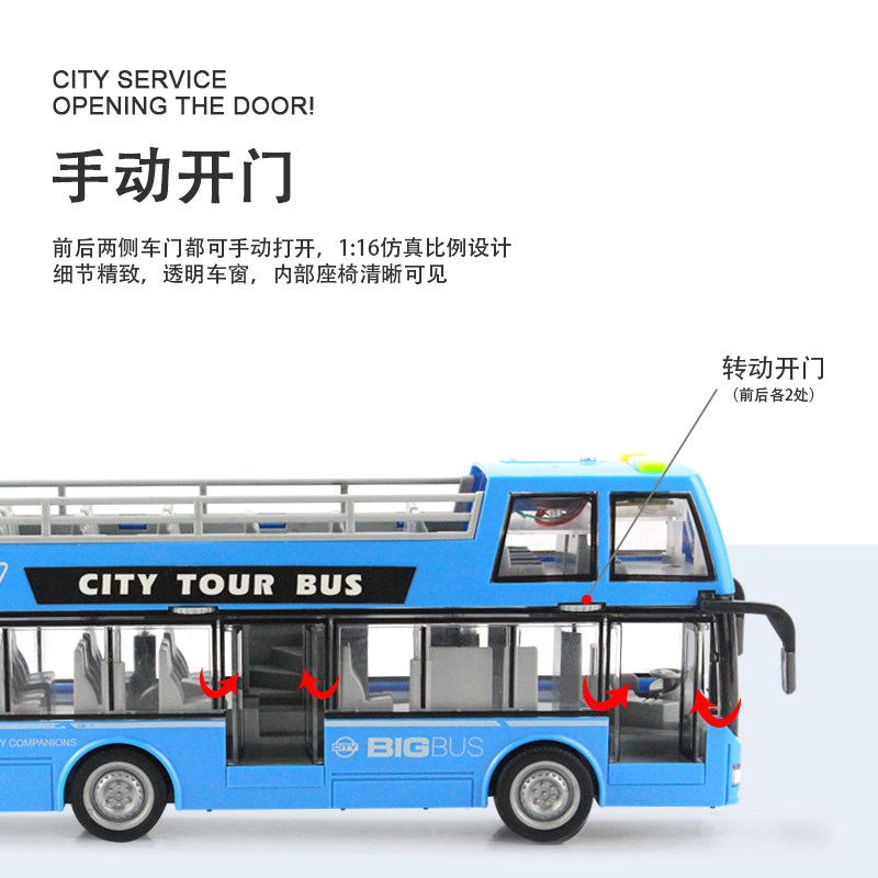 Red double-decker open door sightseeing bus full range of 6 Occasional Blue Double Doors Tourist Bus Full of 6 Personal Puppets Red Double Double Door Sightseeing Bus Bus Stop Desk Send 2