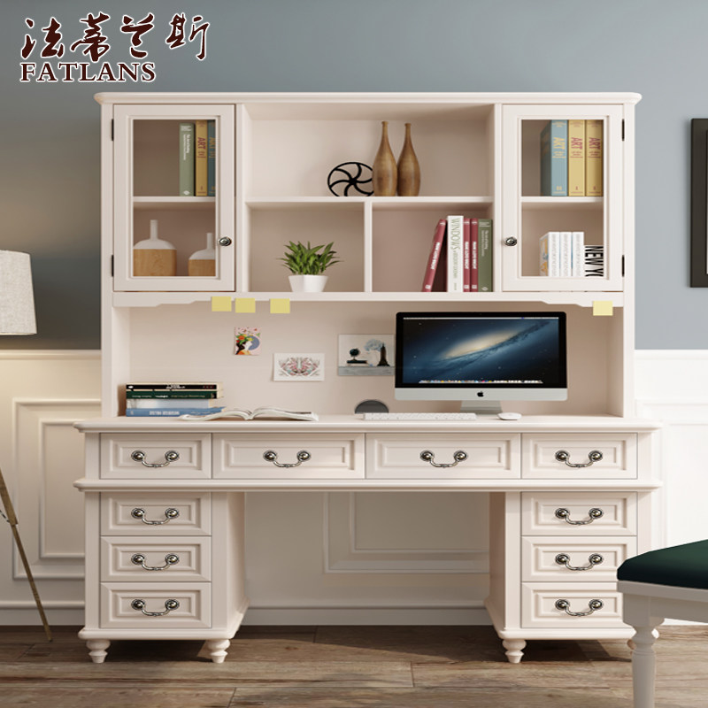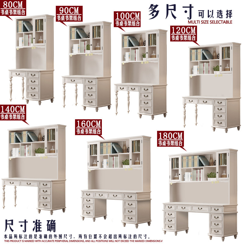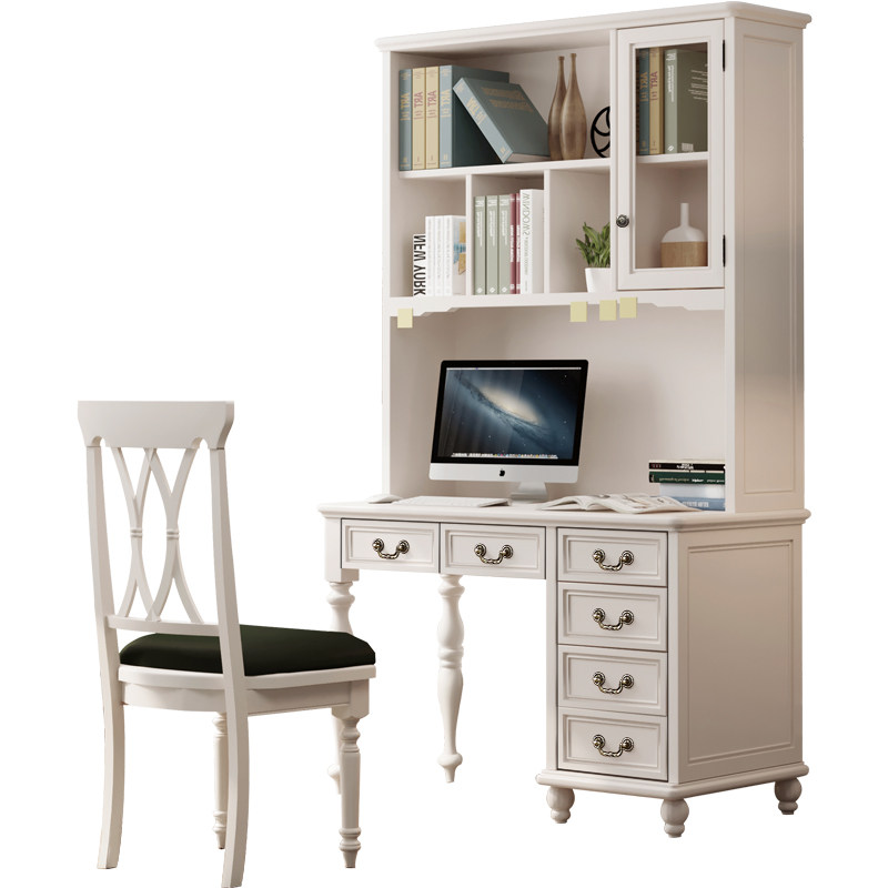 Pure solid wood White American light luxury small apartment white desk bookshelf combination All table children's learning table