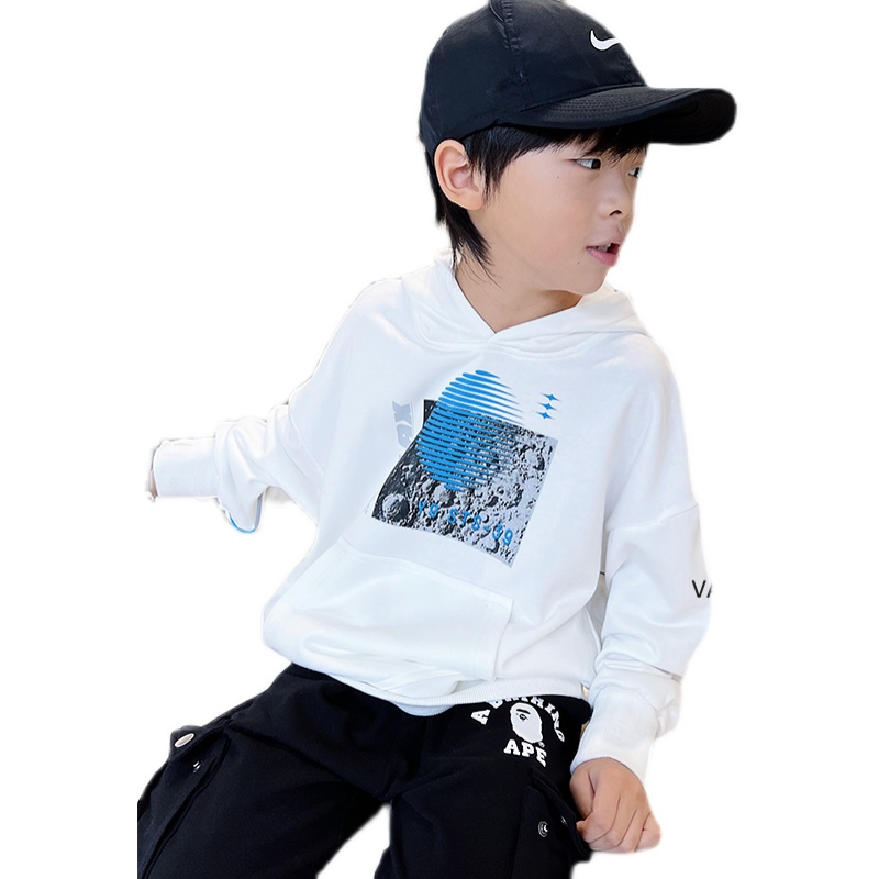 JUSTIN children's autumn clothes cotton soft printed hooded sweatshirt boys Western style hip-hop loose casual thick cotton tide