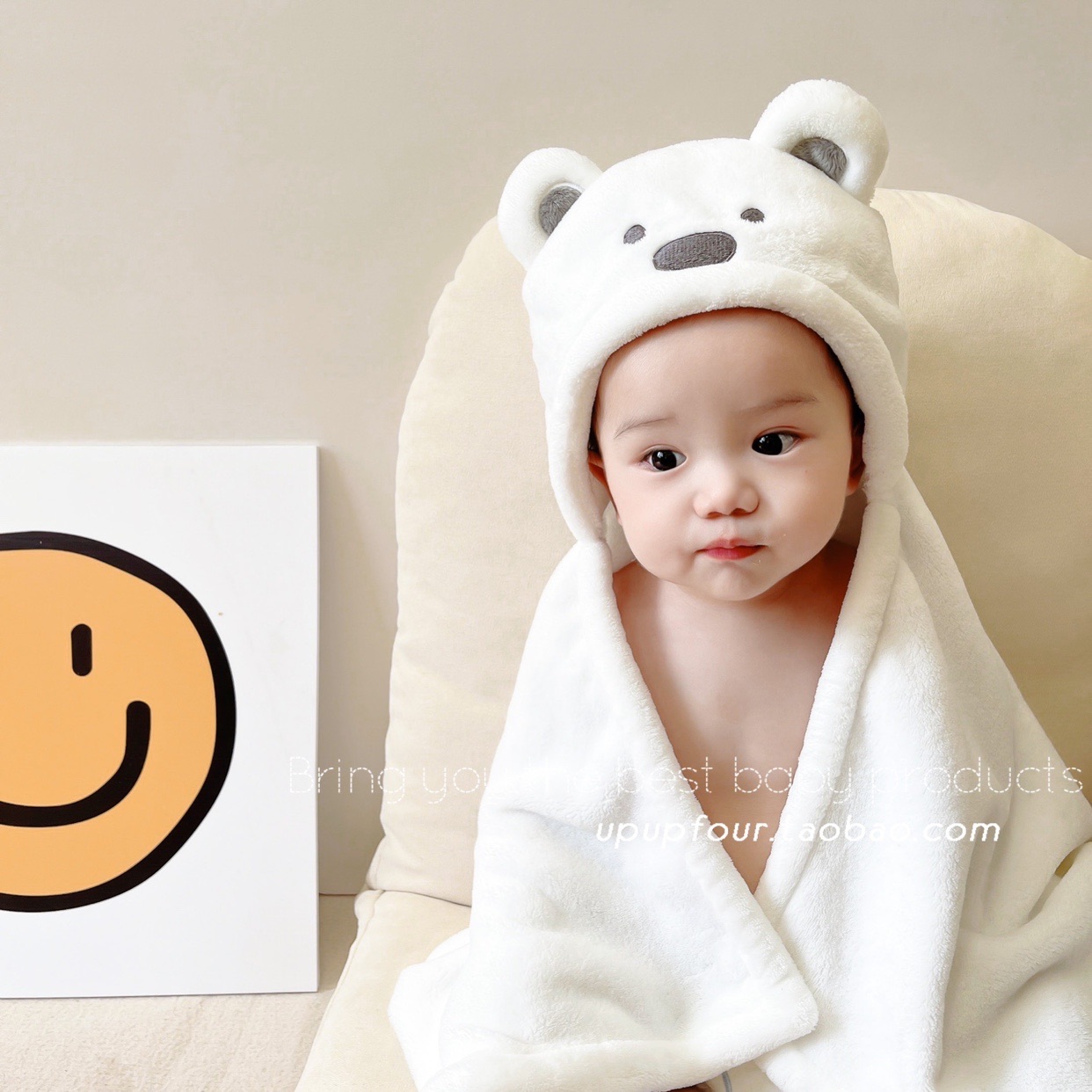 UpupFour export quality in Korean newborn baby coral velvet hugged baby baby bath towel