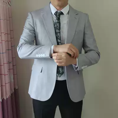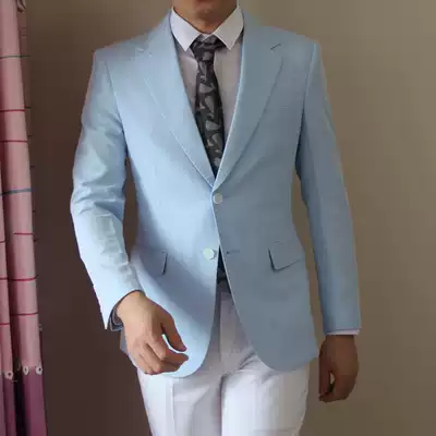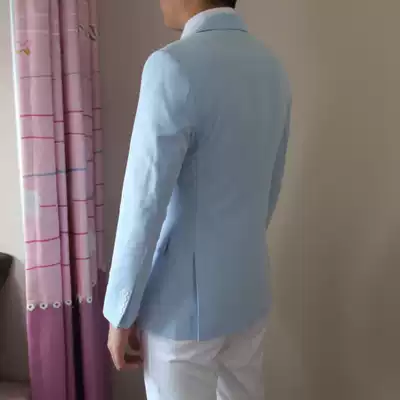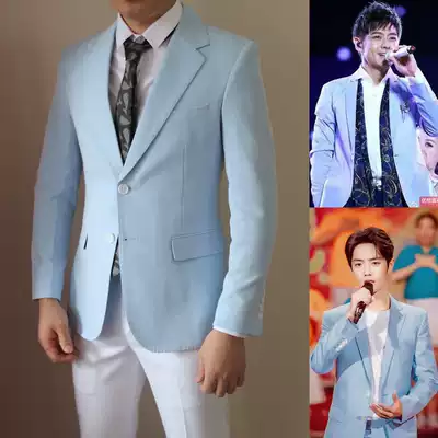 Autumn casual men's suit coat Xiao Zan with herringbone pattern sky blue slim high grade fried street suit man