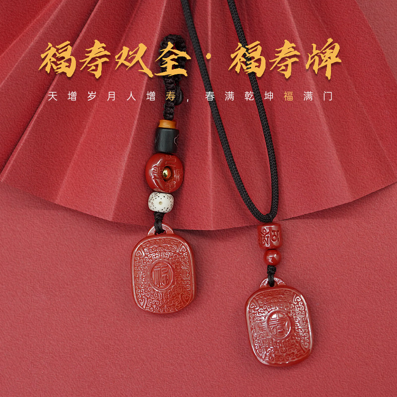 Raw ore cinnabar Fushou brand pendant Fushou Ankang