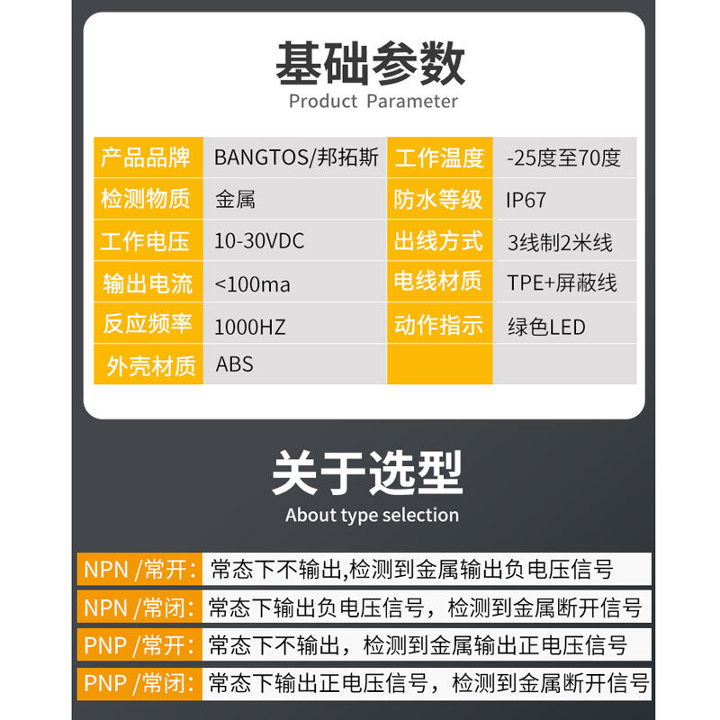 Buntuos inducted square miniature 24V proximity switch third-line NPN stroke limit metal induction sensor