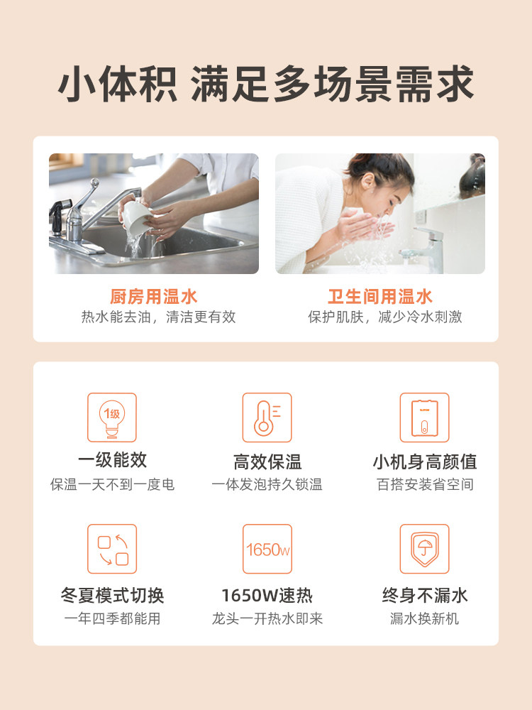 Supor small kitchen treasure under the table small household kitchen electric water heater mini fast heat water storage type hot water treasure UK05