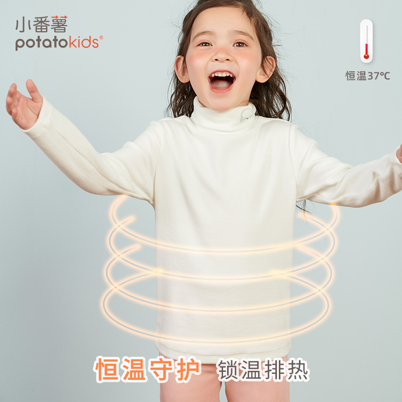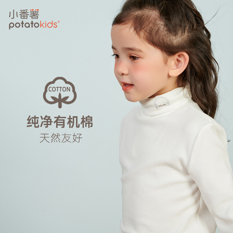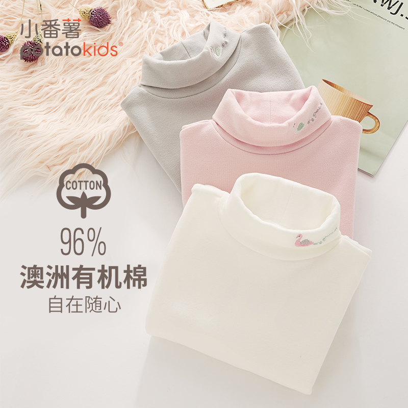 Little sweet potato children's soft cotton high-necked bottoming shirt 2022 autumn and winter white medium-thick warm tops for boys and girls