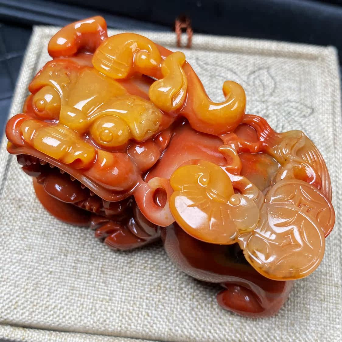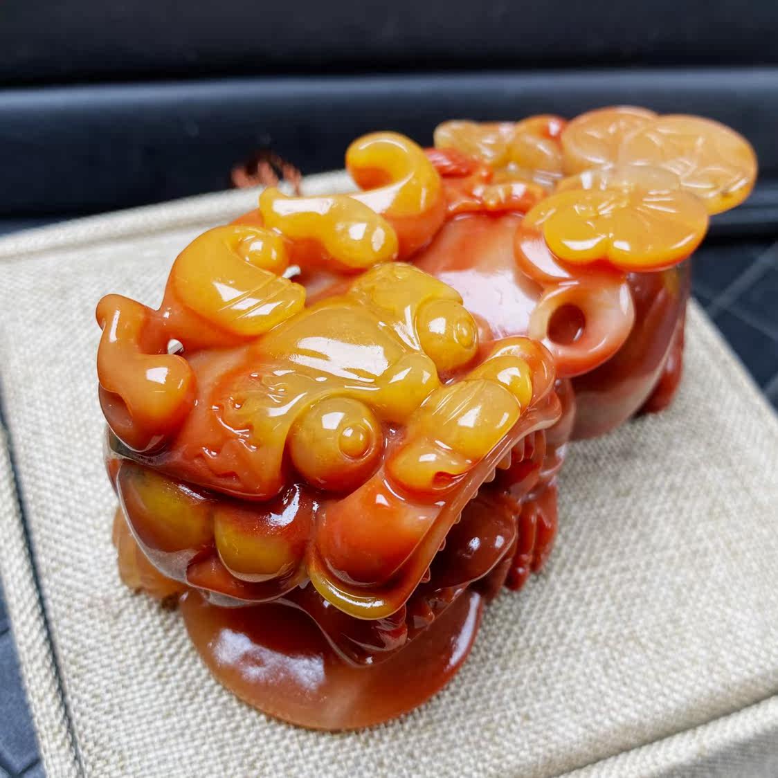 Natural Yunnan Huanglong jade overlord brave hand play dragon ling material yin and yang eyes yellow robe plus body jade decoration