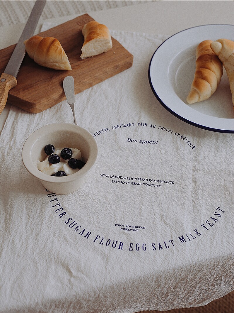 nicethings homemade Korean ins printed table cloth French English printed white napkin photo background cloth