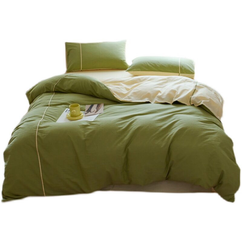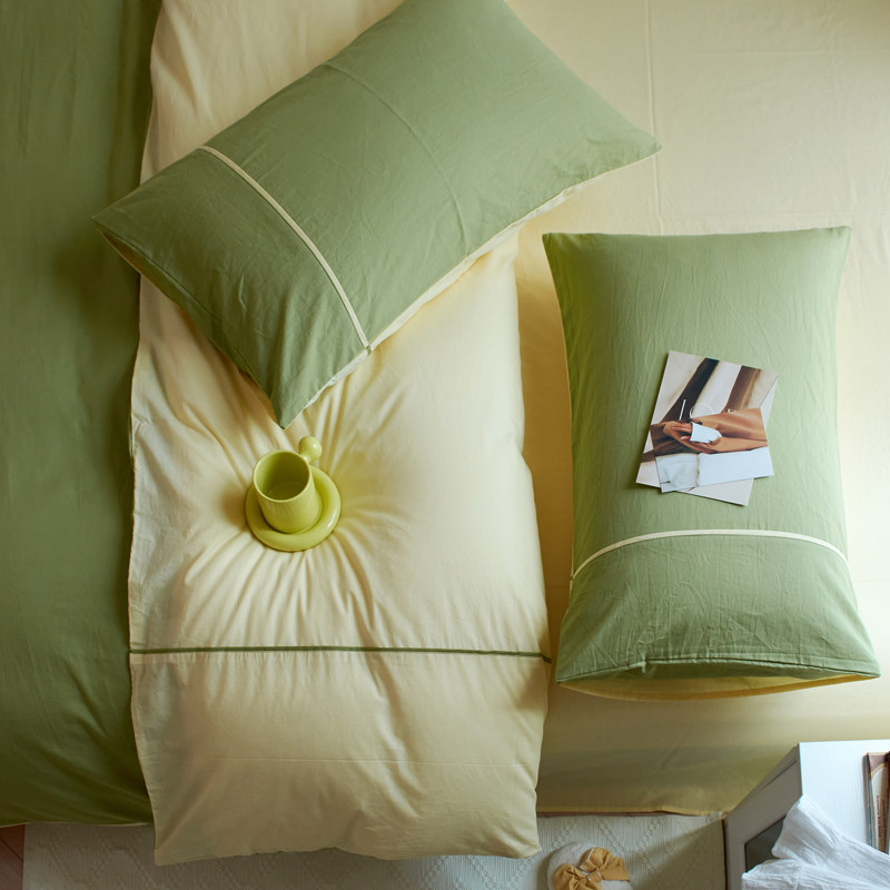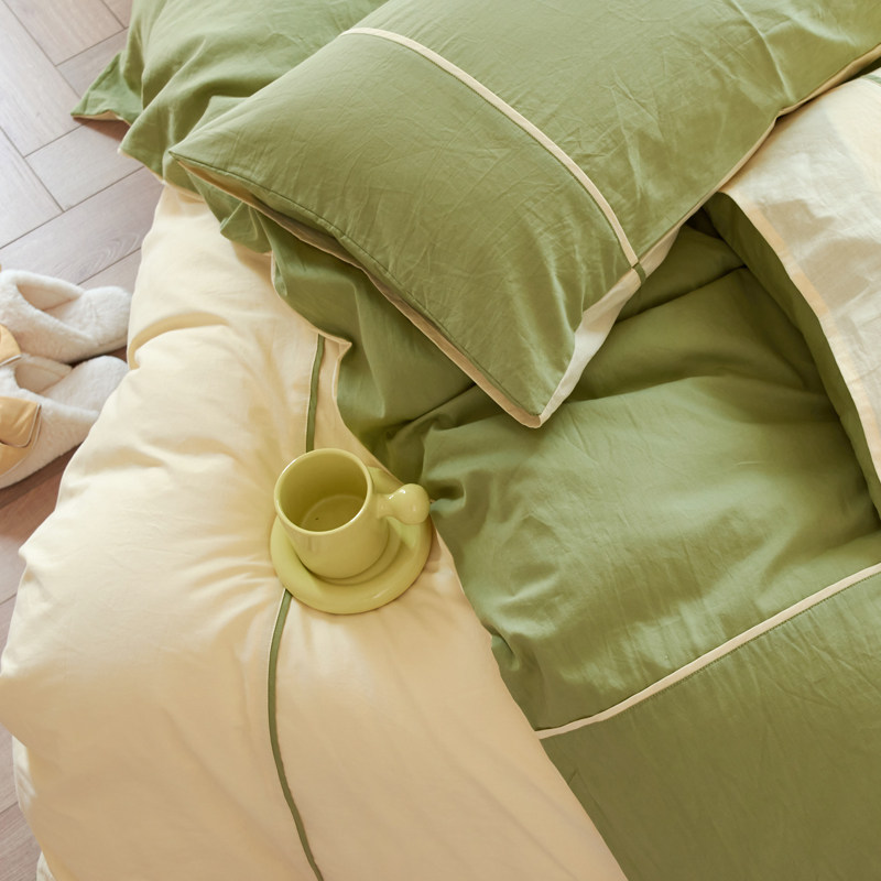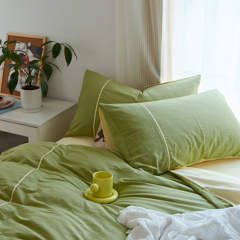 Nordic Wind Double spelled Little Qing New washed cotton Four sets pure cotton quilt cover sheet All cotton 1 8 m Double yellow green-Taobao