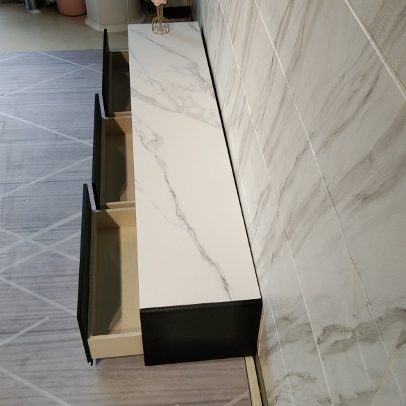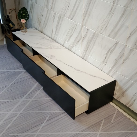 Nordic simple modern rock slab TV cabinet coffee table combination small apartment living room marble 3 meters black rounded anti-collision
