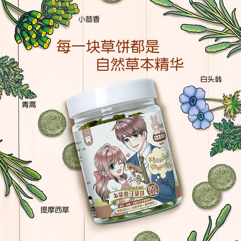 IZZO Evegan herbery Tooth Grass Pie Love Treasure Wheat Ti Moshe Hamster Dutch Pig Guinea Pig Dragon Cat Rabbit Grass Cake