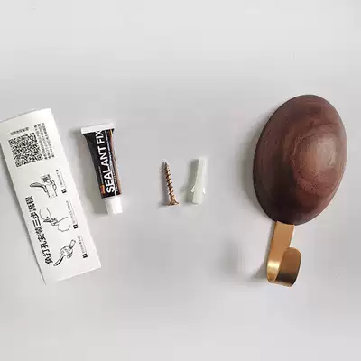 Black walnut solid wood adhesive hook wall hanging non-hole creative copper hook North American simple modern adhesive hook