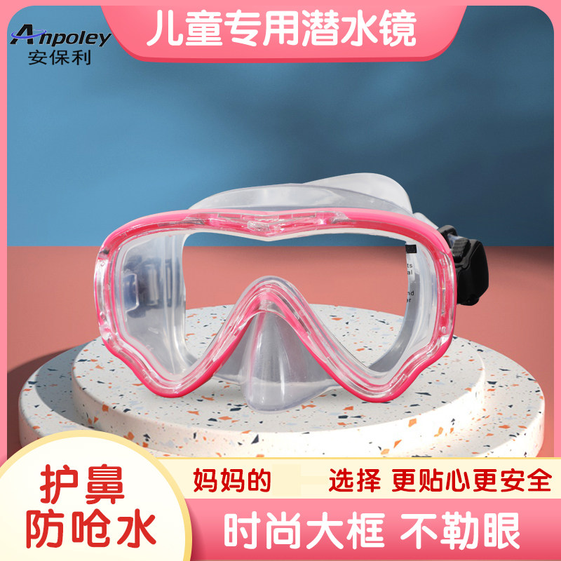 Children's large frame swimming goggles anti-fog anti-choking mirror professional swimming glasses diving mirror suit with earplug nose clip swimming cap-Taobao