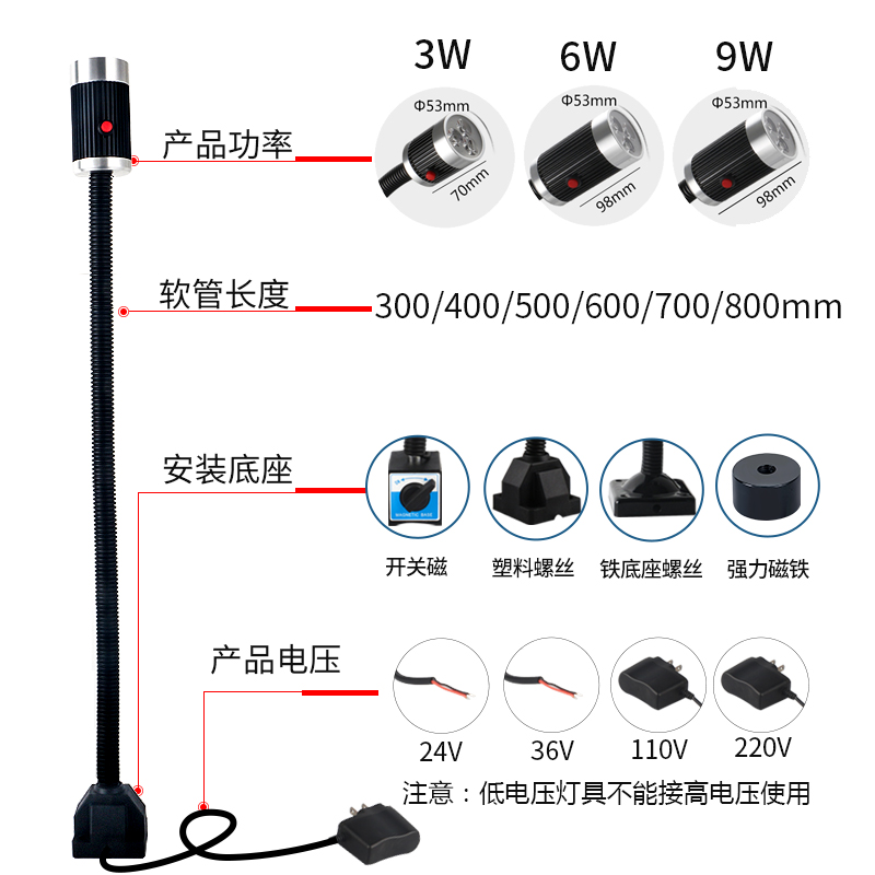 6W 6W 24V pipe length 500mm strong magnetic 6W 220V pipe length 500mm strong 9W 9W 24V pipe length 500mm strong magnetic 9W