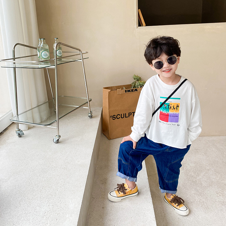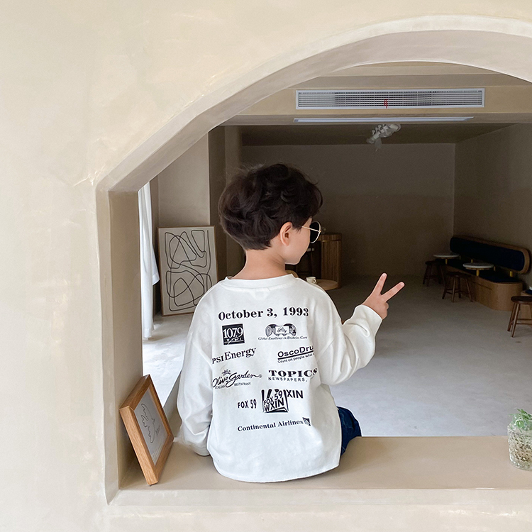 Children Cartoon Printed Thick Cotton T Boy Autumn Clothing New Blouse Baby Loose Pure Cotton Casual Sports Inside a T-shirt