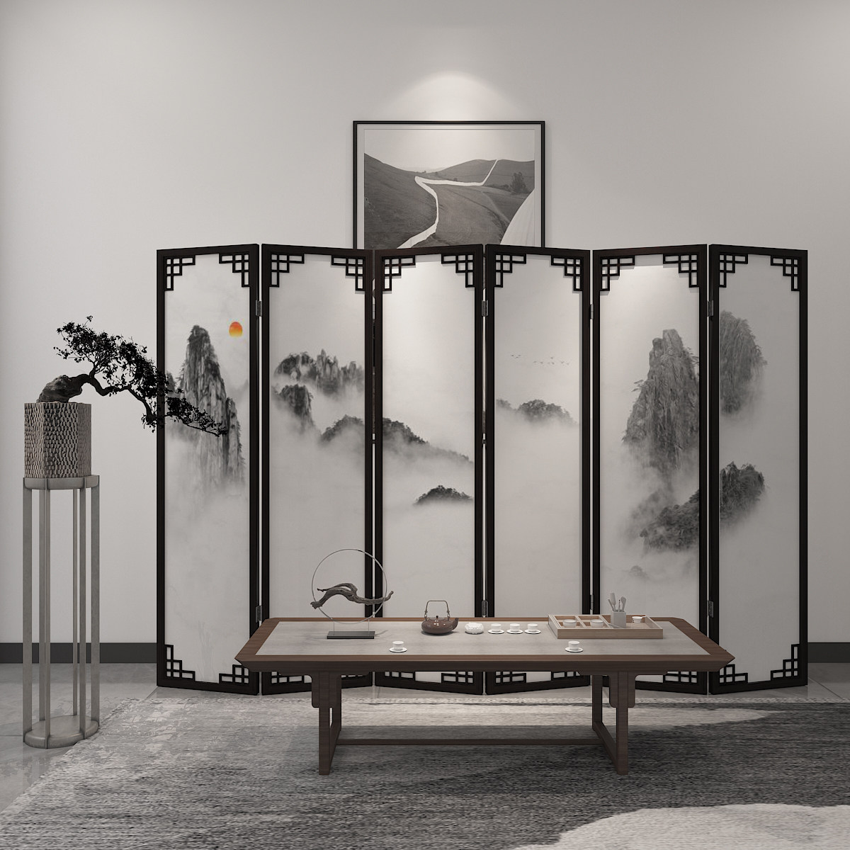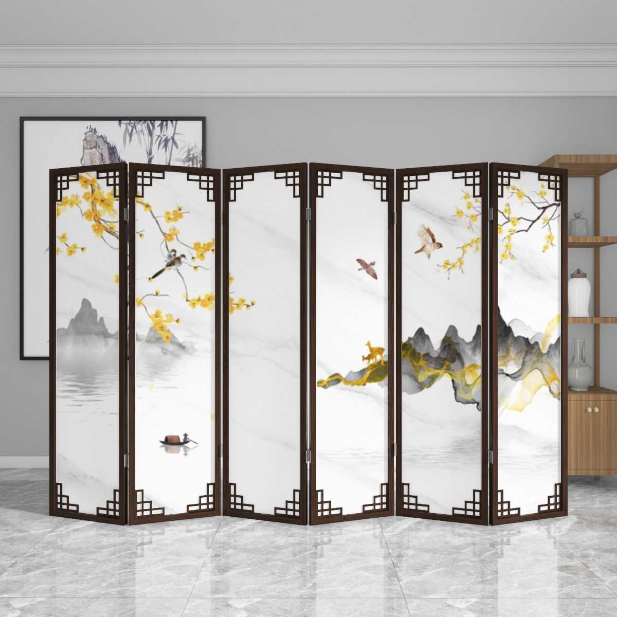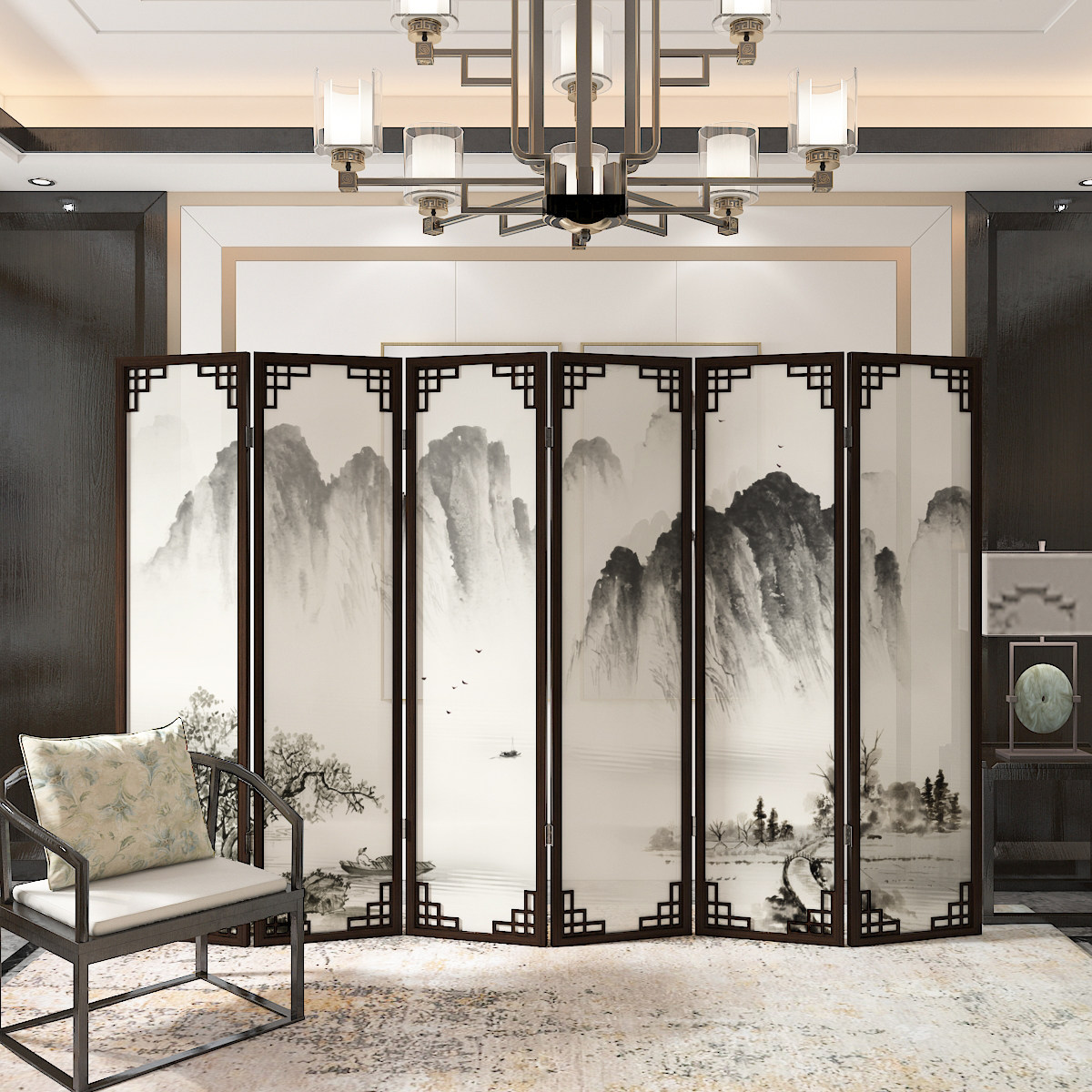 Screen folding mobile partition wall Chinese-style living room office hotel dining room decoration solid wood flower lattice landscape shelter