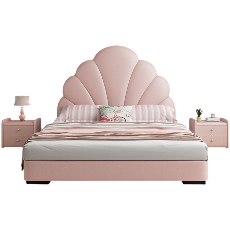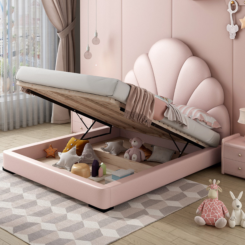 Children's bed leather girl second bedroom all solid wood princess teen girls bed modern minimalist single bed for primary school students