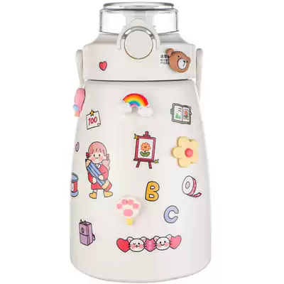 Thermos cup women's large capacity straw type 1000ml Portable cute net red big belly cute water cup large children's cup
