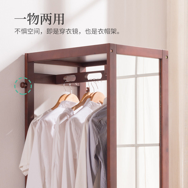 The more lush solid wood full-body mirror full body mirror floor mobile full-body mirror minimalist home bedroom mirror corner hanging hanger