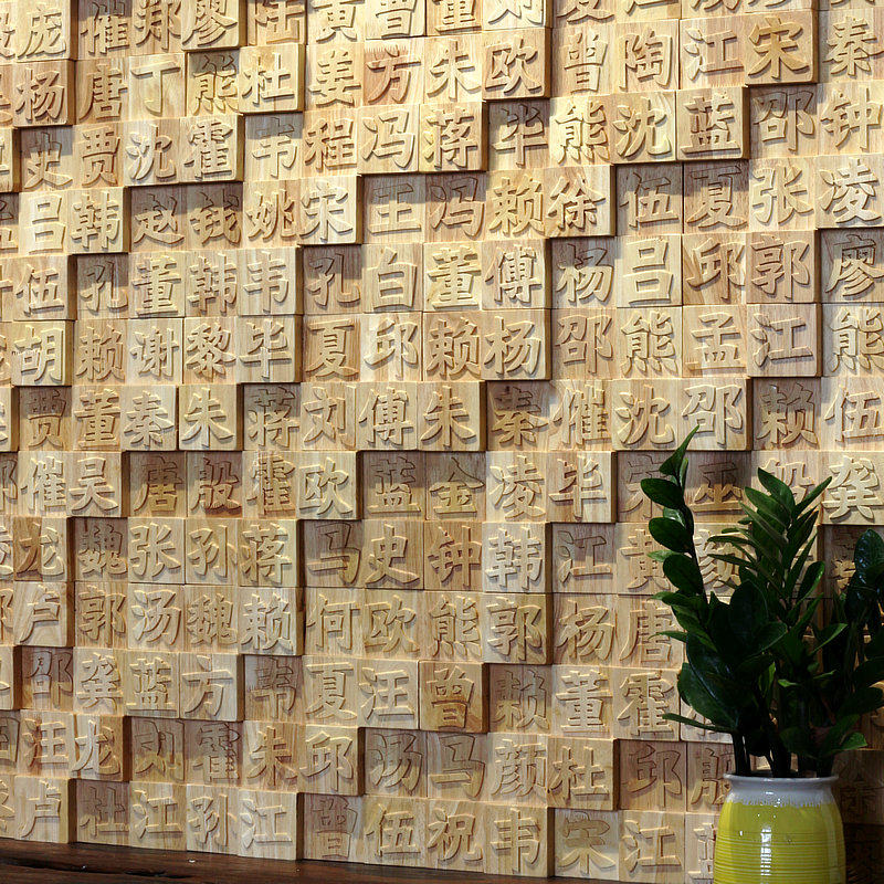 Hundreds of people surnamed cultural solid wood mosaic Yin and Yang Carved Wooden Characters Background Wall Hanging Painting Wall Decoration Live Word TV Xuan Guan