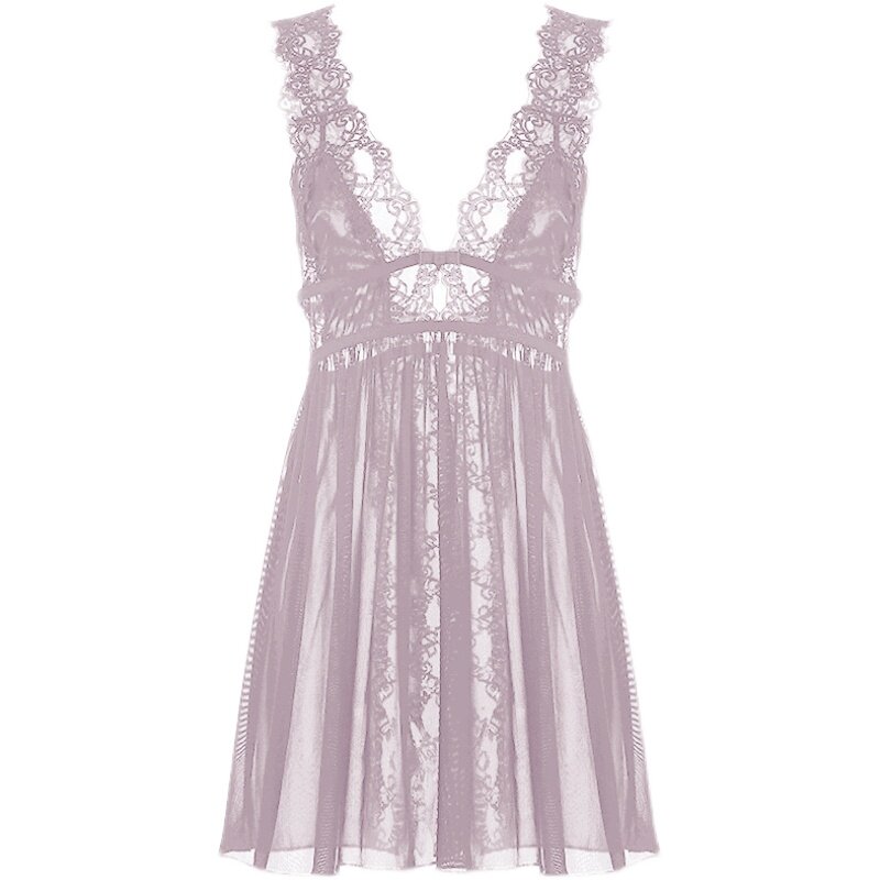 Mrs. Song sexy pajamas women's summer transparent mesh lace back slit temptation short skirt beauty back suspenders
