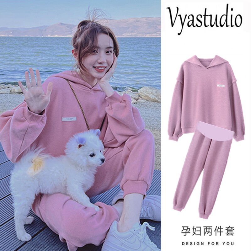 Maternity Spring Suit Spring and Autumn New Fashion Out Autumn Winter Net Red Sweatshirt Sports Autumn Casual Two-Piece Set
