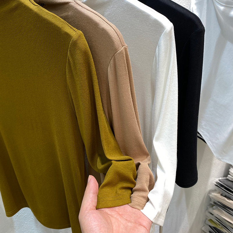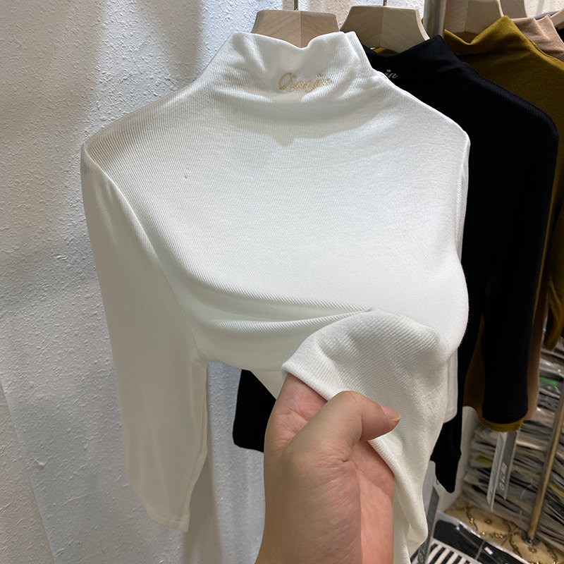Europroduct Design Sensation Alphabet Embroidered Semi-High Collar Thread Middle Sleeve T-shirt Woman 2021 Early autumn new undershirt blouses