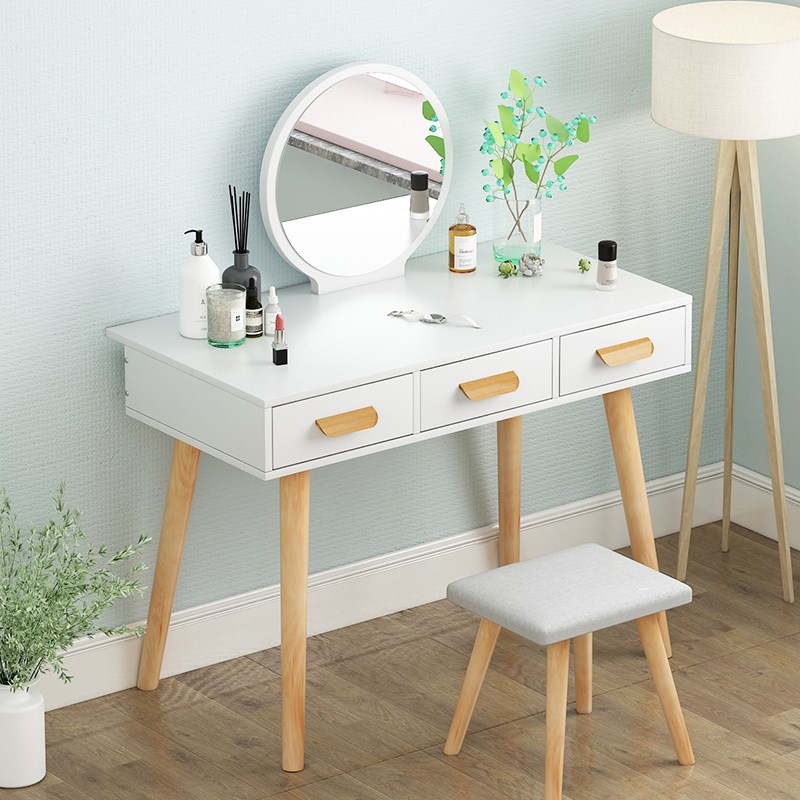60*40cm Light Walnut Dressing Table (Solid Wood Feet Without 60*40cm Warm White Dressing Table (Solid Wood Feet Without 50cm Warm White Single Drawer Dressing Table) LED Light Butterfly 50c