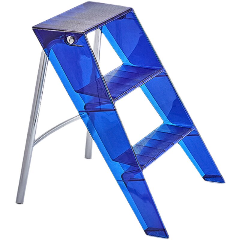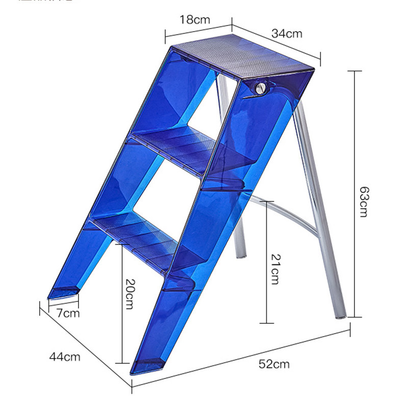 Home Ladder Blue Transparent Acrylic Plastic Telescopic Folding Folding Ladder Multifunction three-step pedal herringbone ladder
