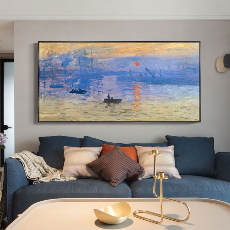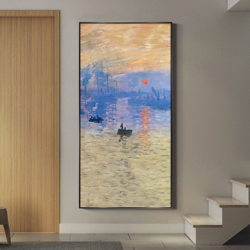 Monet sunrise hand-painted oil painting porch decorative painting landscape landscape painting modern minimalist corridor aisle hanging painting mural