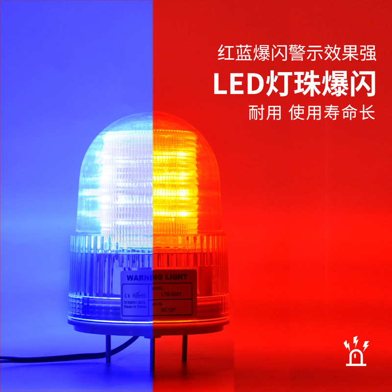 LTE-5201 red blue burst flashing warning light LED bicolor alarm lamp stacking high machine factory workshop sentry glitter lamp 12V