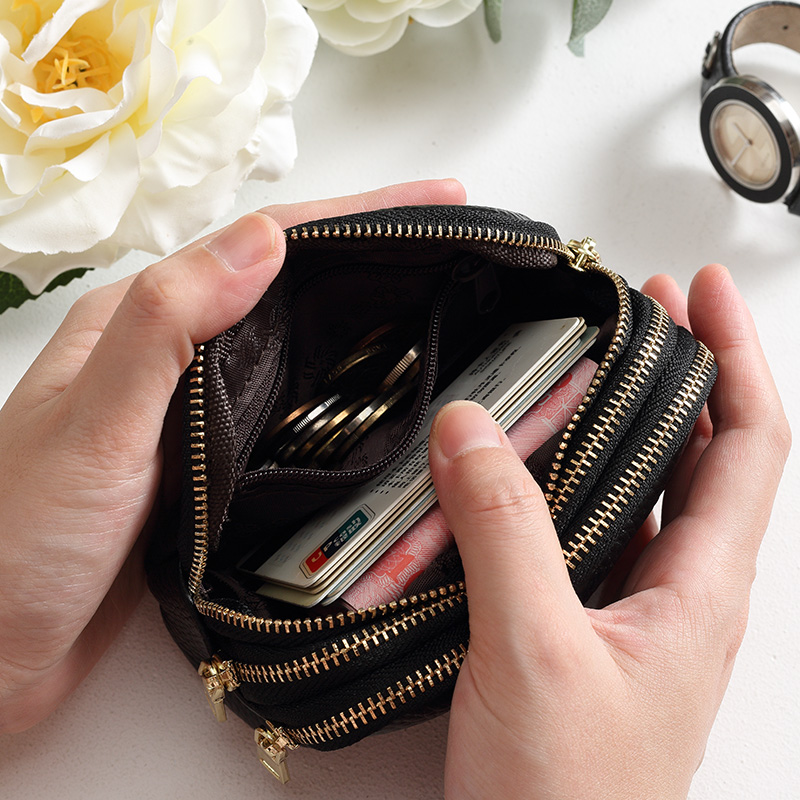 Real Leather Zero Wallet Woman Little Mini Bull Leather Mom Short Coin Bag Large Capacity Multilayer Triple-pull Purse Lady