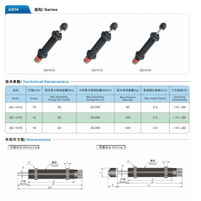 Adjustable oil pressure buffer AD1410 1412 1416 1416 2020 2020 2025 2030 2050-5
