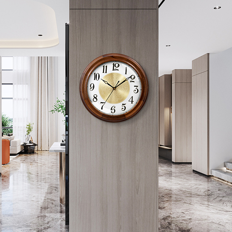 TIMESS Walnut Solid Wood Living Room Bedroom Household with Punch Lightweight Luxury Fashion Creative Simple Wall Clock