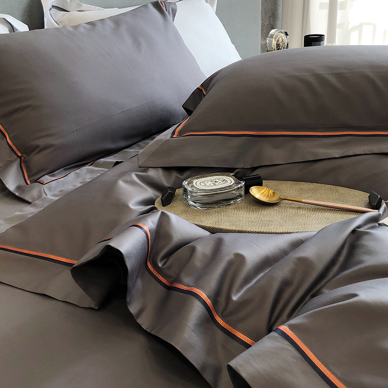 Light luxury 120 long-staple cotton pure cotton four-piece 100 cotton summer solid color simple bed sheet quilt cover bedding