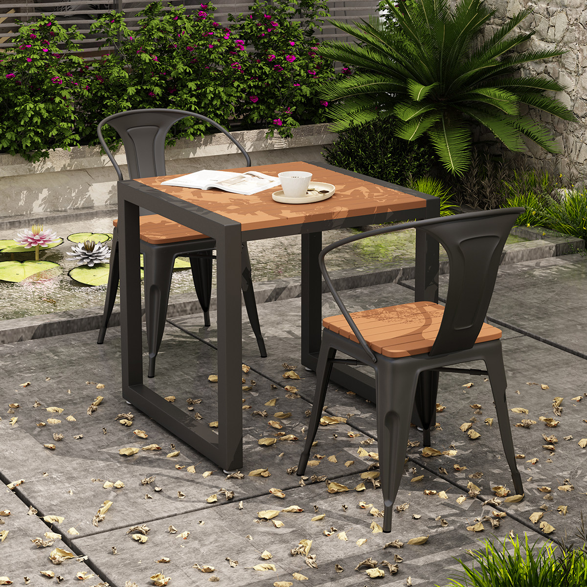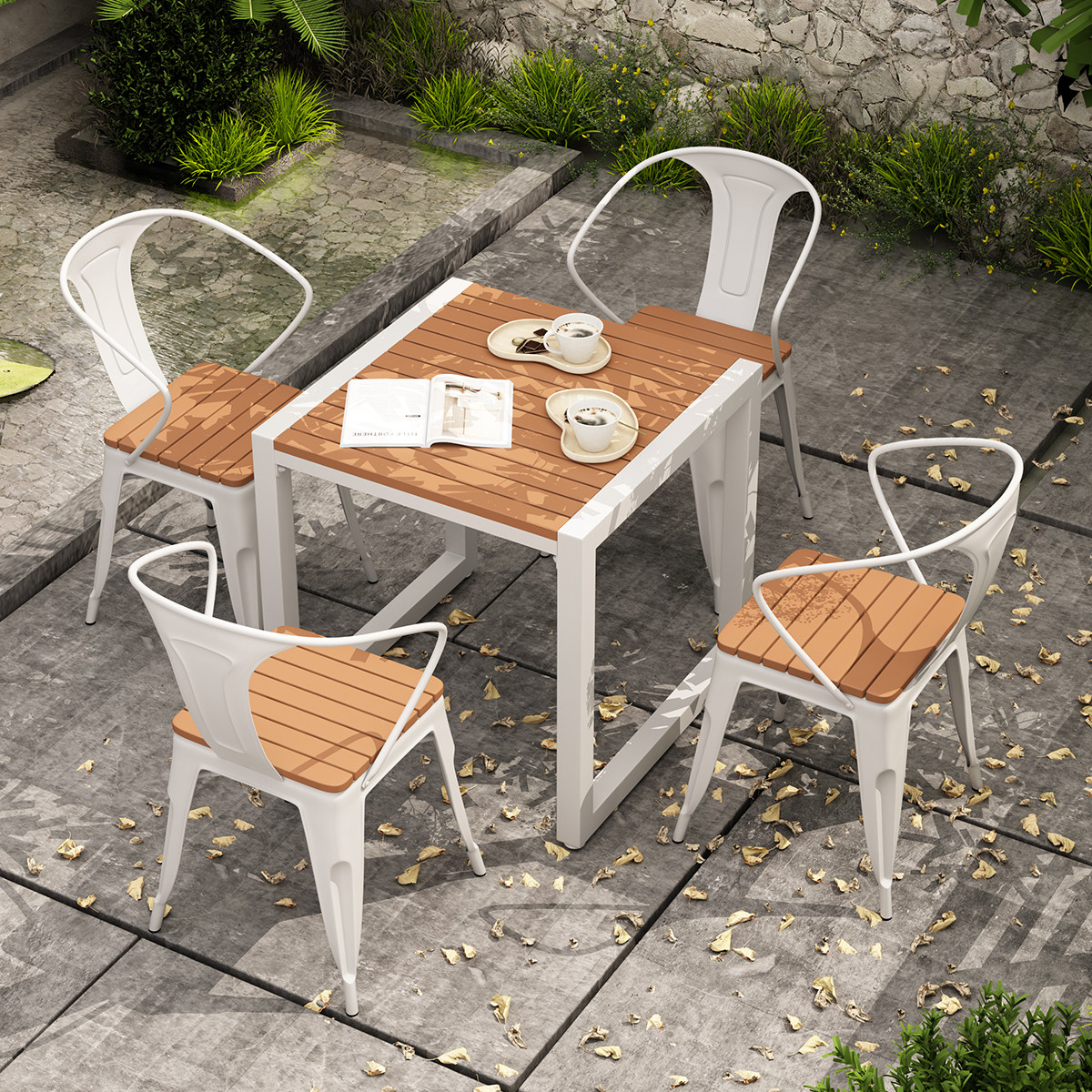 Outdoor courtyard dining table and chair combination leisure villa outdoor wrought iron small square table waterproof sunscreen outdoor balcony table