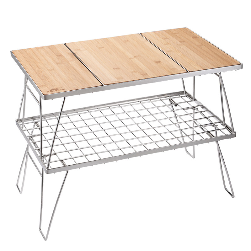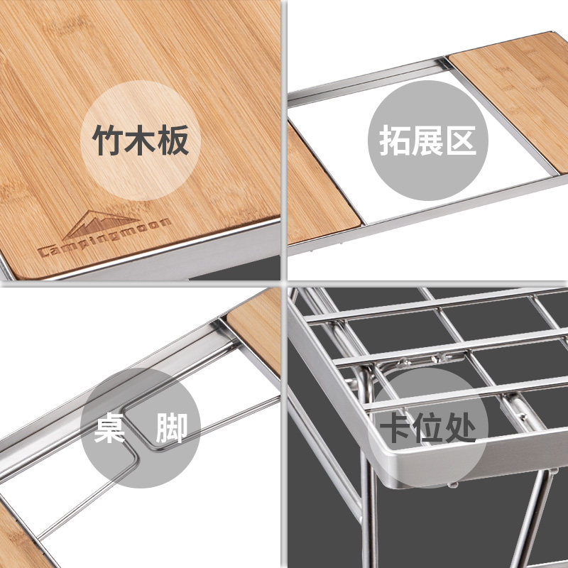(Hello Camping Society) Kirman Outdoor Tea Table Folding Objects Stainless Steel Bamboo Wood Stove Kitchenware Barbecue Table