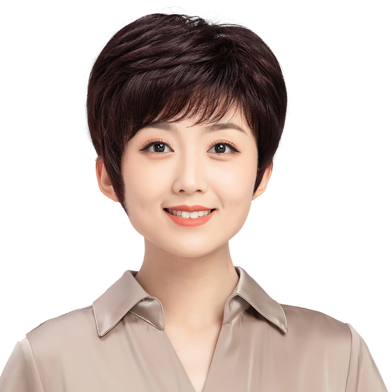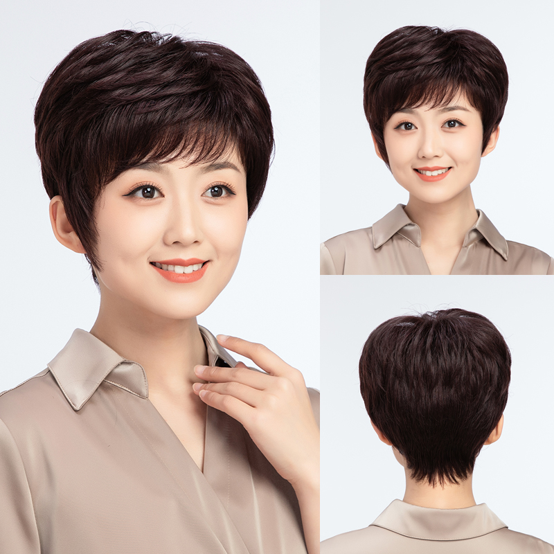 Wig Short Hair Girl Real Hair Real Hair OLD WIG SLEEVE FEMALE LIVE-ACTION HAIR MOTHER REAL HAIR NATURAL WIG