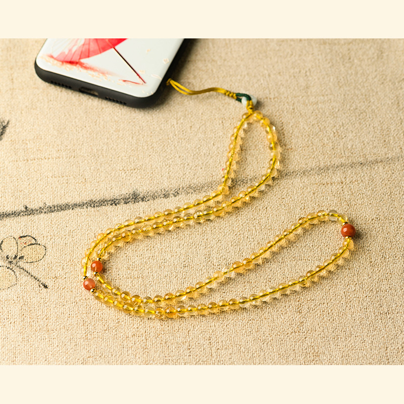 Yellowwater crystal long version mobile phone hanging pendant hanging neck son hanging rope retro Chinese winemaker Birthday Gift woman