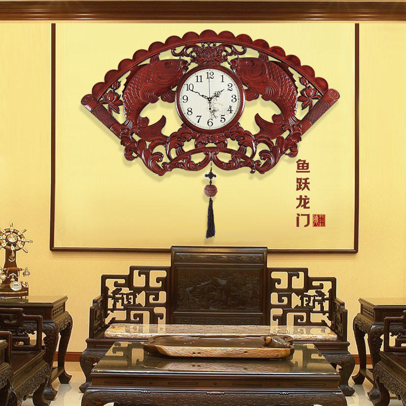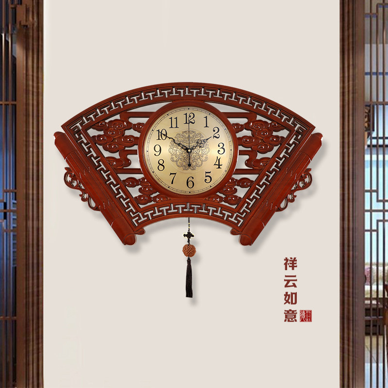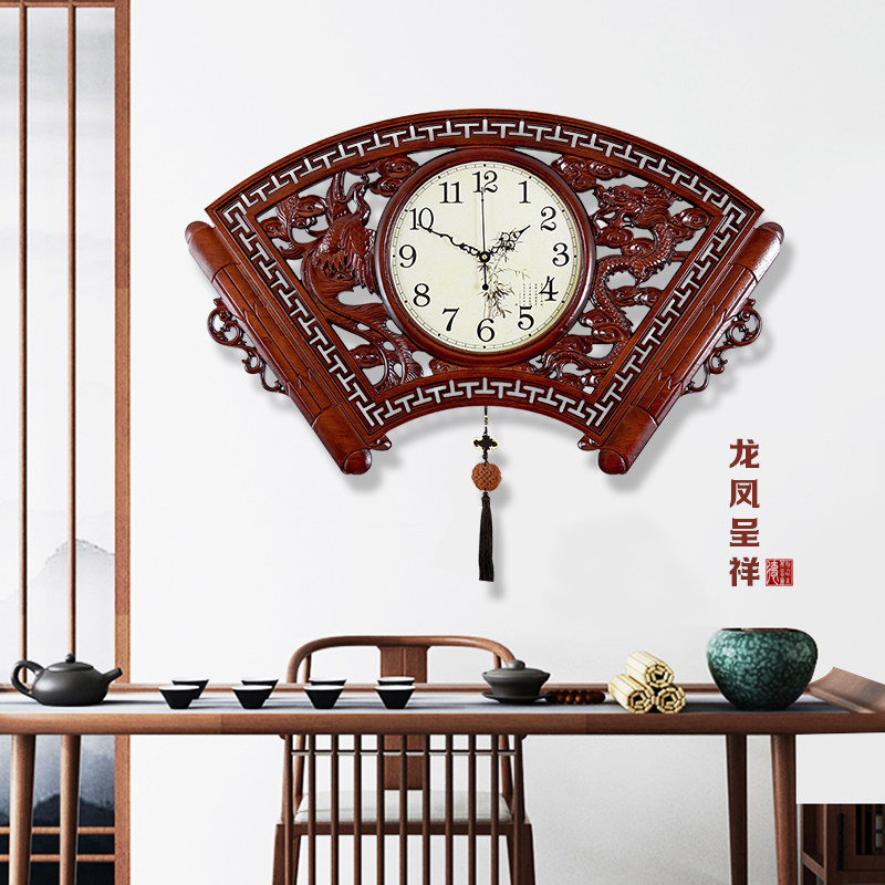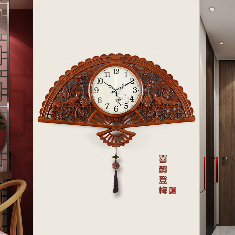New Chinese Wall Clock Household Fashion Solid Wood Watch Creative Atmosphere Light Luxury Wall Wall Clock China FengWall Clock