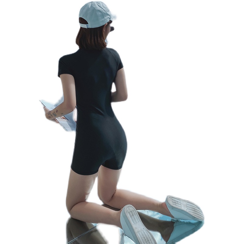 Swimsuit women's summer 2022 new Korean one-piece short-sleeved conservative cover belly slimming black sports surfing wetsuit