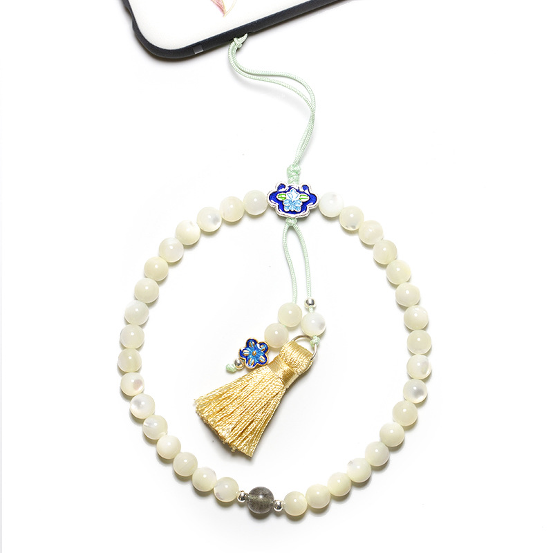 China Wind retro ancient art and creativity mobile phone hanging necklace with short section of female abyssal white butterfly butterfly mobile phone hanging ornament