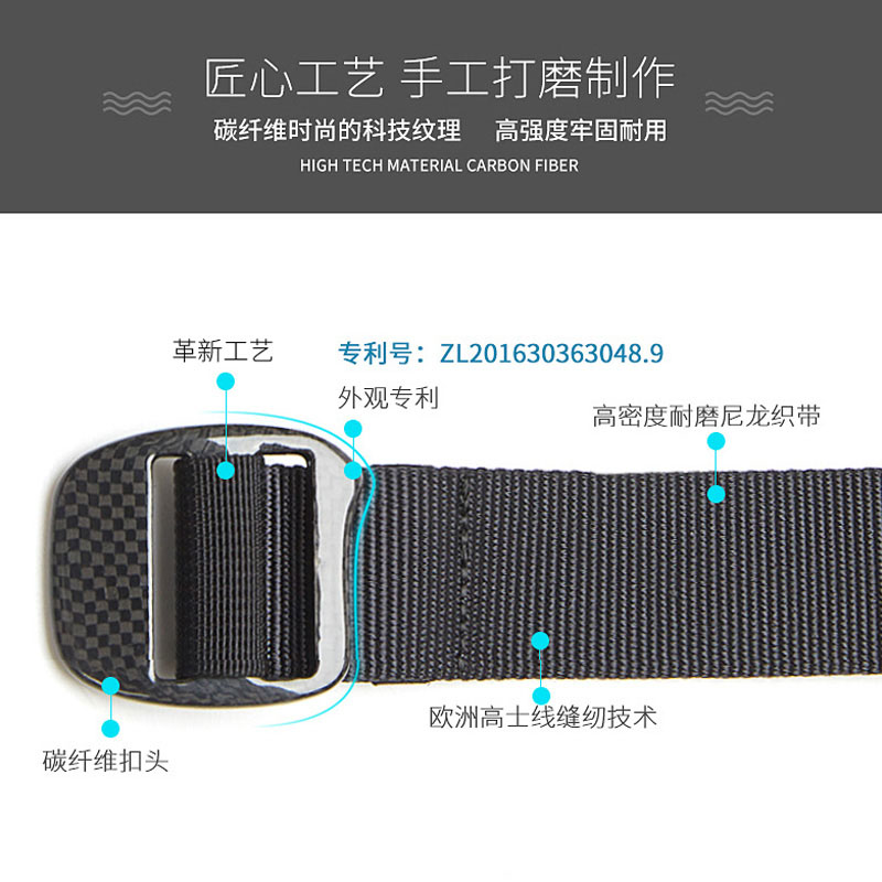 Men's belt canvas belt Korean version sports outdoor nylon iron-free metal carbon fiber buckle casual student belt