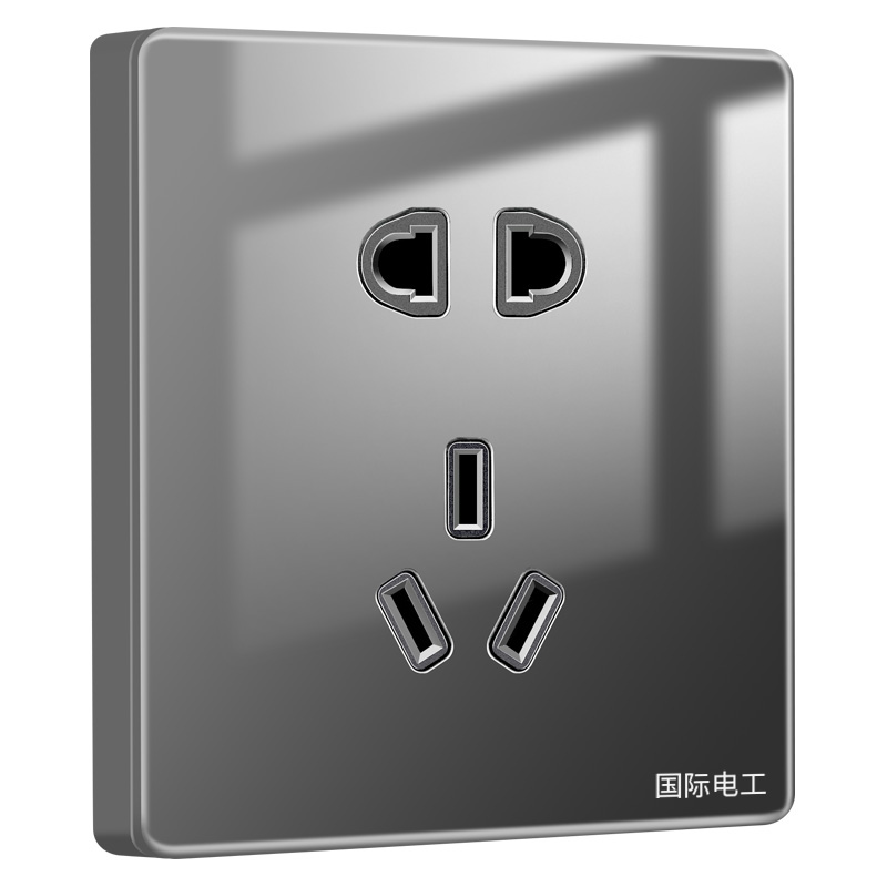 International Electrotechnical Tempered Glass Switch Socket Household Panel Type 86 One Open Double Five Hole USB Wall 16a Air Conditioner