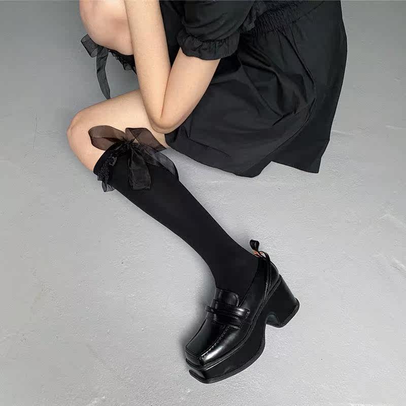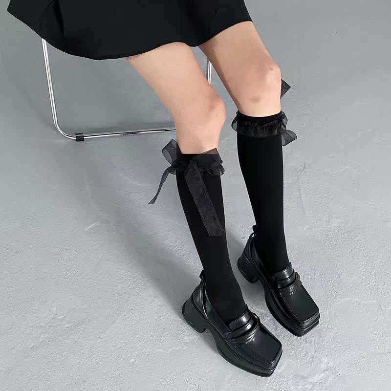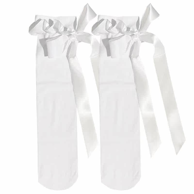 Spring and summer white mid-tube socks lace ribbon straps lace fairy velvet calf socks Lolita jk half socks