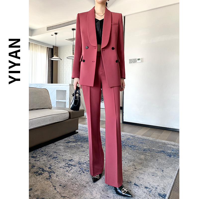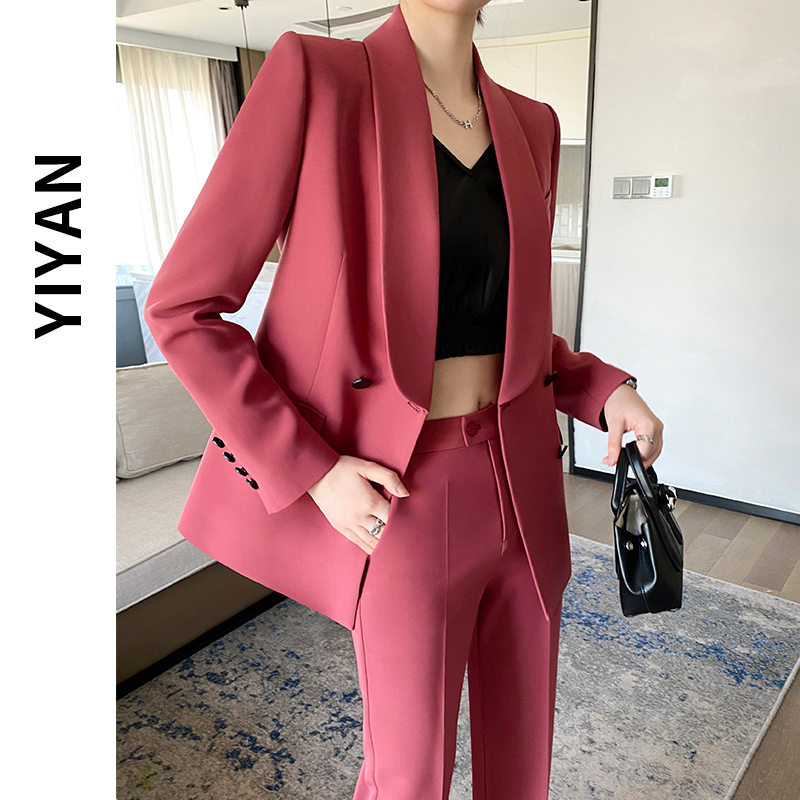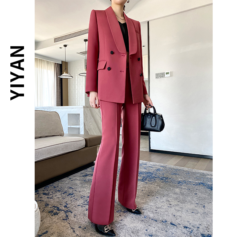 Brick red suit (top wide-leg pants) pure white suit pink suit