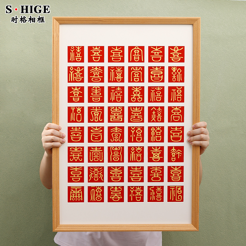 (gift box) small 100 square grid 46*46cm red cardboard happy character copying template 2 calligraphy pens (gift bag) large 100 square grid 69*69cm red cardboard